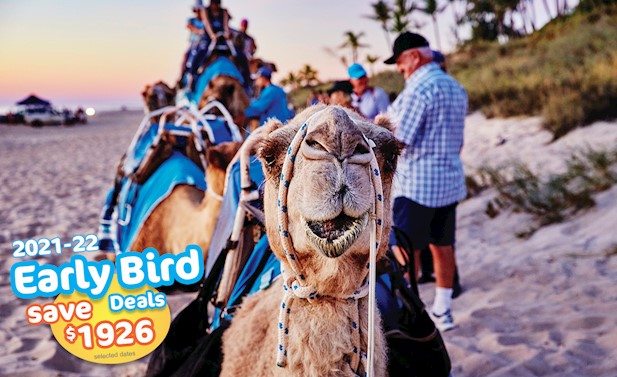Broome City Sightseeing Tour With Optional Camel Ride : There is not better way to stroll along the iconic cable beach than on camel back.