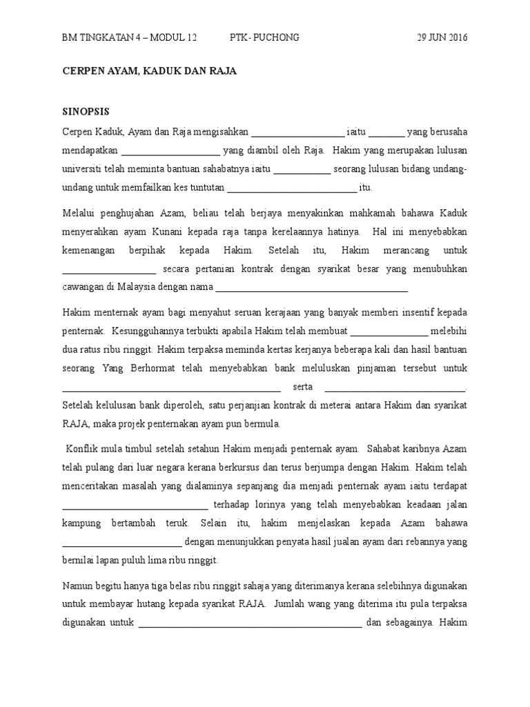 Cerpen Kaduk Ayam Dan Raja Interactive Worksheet from files.liveworksheets.com We did not find results for: Check spelling or type a new query. Maybe you would like to learn more about one of these? Kaduk ayam dan raja nota.